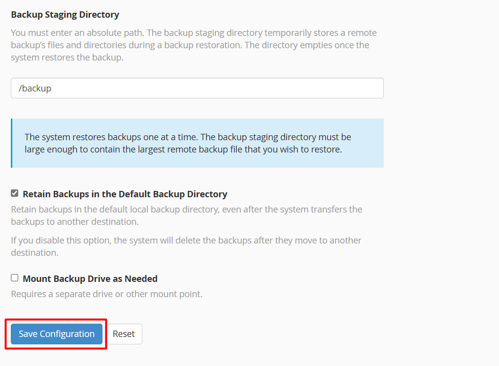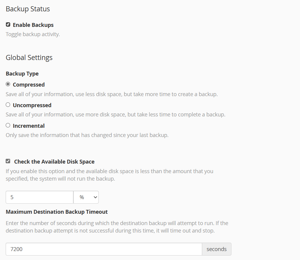 - Customization Options: Administrators can customize backup settings for individual cPanel accounts or apply global settings that affect all accounts on the server.