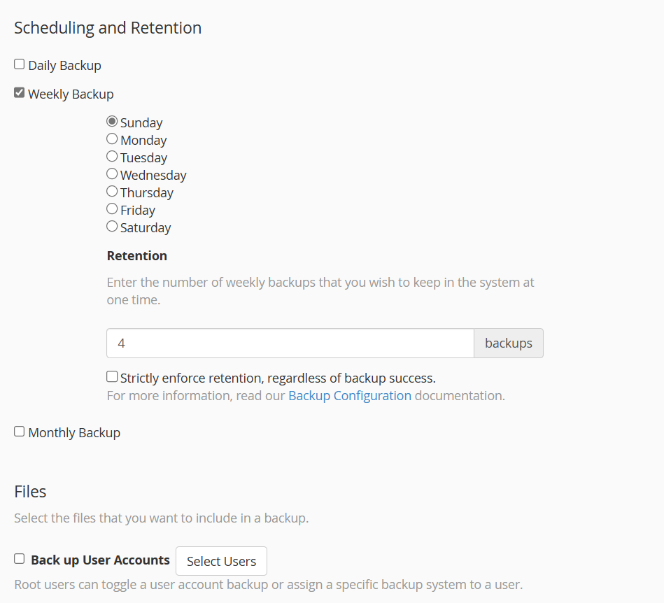 Scheduling cPanel backups in WHM